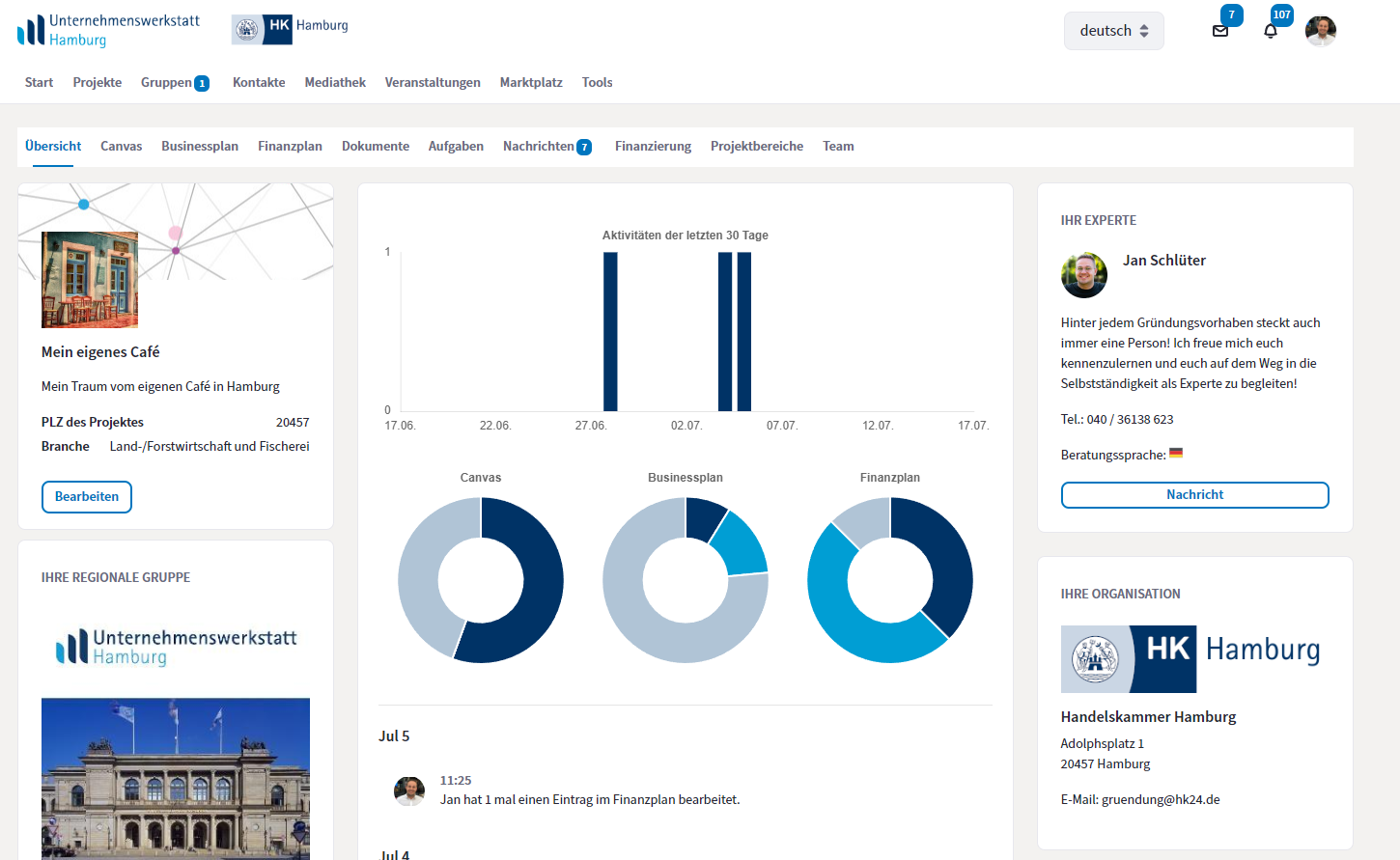 Um die Unternehmenswerkstatt benutzen zu können, müssen Sie sich einmalig und kostenlos registrieren. Dabei benötigen wir von Ihnen: